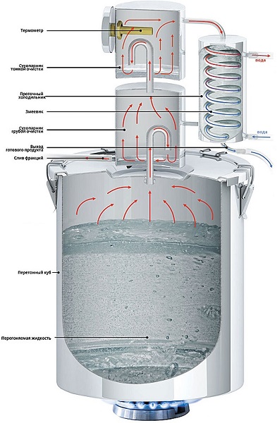 Теперь можно экспериментировать с новыми рецептами алкогольных напитков. Также в верхний сухопарник вмонтирован термометр, который позволяет контролировать оптимальную температуру паров в 73-78 градусов и получать наиболее качественный дистиллят.