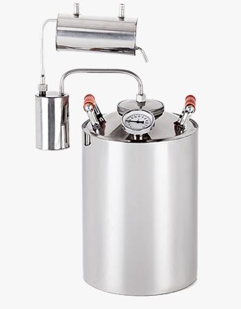 В комплектацию входит: перегонный куб на 12 литров с крышкой, биметаллический термометр, подарочная упаковка, сухопарник с холодильником, инсутрукция по сборке, гарантийный талон.
