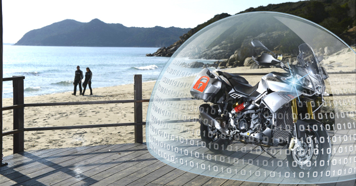 При срабатывании любого из датчиков раздается тревожное звучание сирены: миниатюрная сирена, входящая в комплект, имеет звуковое давление до 115 дБ и влагозащищенное исполнение, поэтому она может быть надежно спрятана в мотоцикле.