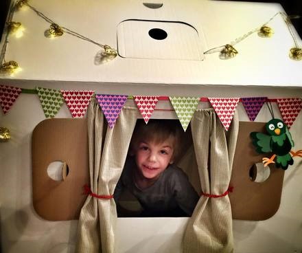 Домик сделан из экологически чистого трехслойного гофрокартона толщиной 3 мм, состоит всего из трех деталей и собирается за 10 минут с помощью пластиковых стяжек (они в комплекте) через заранее подготовленные отверстия. Размеры домика позволяют уместиться в нем родителю одновременно с ребенком, а также проносить его через большинство межкомнатных дверей.