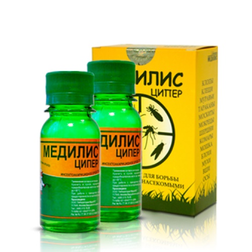 Медилис-ЦИПЕР представляет собой желтоватую прозрачную жидкость, действующим веществом которой является циперметрин. В растворенном в воде виде препарат приобретает белесоватый оттенок.