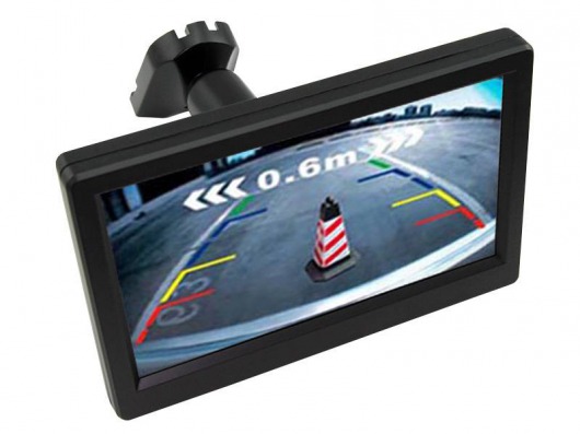 Пакровочный 5" монитор высокого разрешения для грузовых автомобилей. Изображение на экране видно в любой самый солнечный день благодаря высокой яркости. Встроенный датчик света автоматически регулирует яркость экрана исходя от внешней освещенности. Монитор имеет штатный крепеж и устанавливается на оригинальный крепёж на стекло автомобиля. Для установки требуется демонтаж штатного зеркала. При включении задней передачи на экран зеркала автоматически выводится изображение с камеры заднего вида, а дополнительный видеовход позволит подключить боковую или переднюю камеру. Яркость и контрастность картинки можно отрегулировать с помощью кнопок на задней части монитора. Корпус зеркала повторяет дизайн оригинального зеркала.