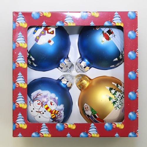 Набор стеклянных елочных шаров PeneriGifts (с цветными рисунками, 4 шт.)