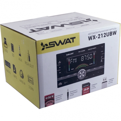 Автомобильная штатная магнитола 2din SWAT WX-212UBW – очень функциональное утройство. У автомагнитолы есть широкий набор мультимедийных технологий, которые позволяют выжать из устройства по максимуму. Ресивер способен выдавать звук на 4 колонки по 50 ватт. Есть возможность сохранения до 18 радиостанций на цифровом радио-тюнере. Кроме того, реализована возможность прослушивания аудиозаписей через карту памяти или диски.