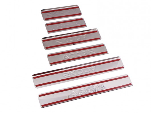 Накладки на металлические пороги дверей Шкода Ети с логотипом авто не только обеспечивают защиту верхней и боковой поверхности внутреннего порога, но и отлично вписываются в интерьер автомобиля, подчеркивая его стиль и индивидуальность. C монтажом проблем не возникнет: установка накладок на внутренний порог для Skoda Yeti производится на штатные места с помощью скотча 3M.