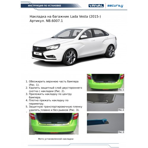 Вопросы и отзывы про Накладка на багажник для Lada Vesta от 15 г.в. (Rival)