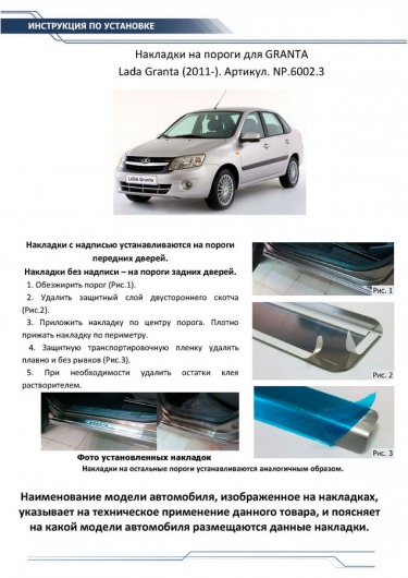 Вопросы и отзывы про Накладки на пороги для Lada Granta от 11 г.в. (Rival)