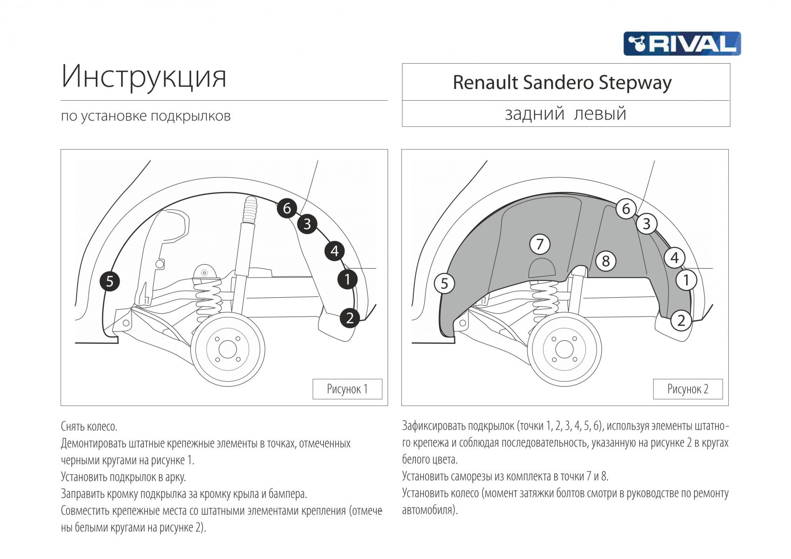 Левый задний подкрылок — это отформованный ударопрочный кожух, который является важной защитной деталью авто. Данный подкрылок крепится сзади с левой стороны. Задний локер разработан специально для автомобилей Renault Sandero Stepway от 2014 г.в. Благодаря этому он идеально повторяет форму ниши колеса, просто устанавливается, а все технологические отверстия левого подкрылка совпадают со штатными местами крепления.
