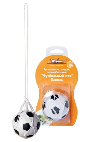 Ароматизатор воздуха в салон авто выполнен в форме футбольного мяча. Такой аксессуар не только украсит салон автомобиля, но и создаст приятный аромат и избавит салон машины от неприятного запаха. Данный освежитель воздуха для автомобиля имеет аромат «Ваниль», запах от него не резкий, но довольно стойкий.