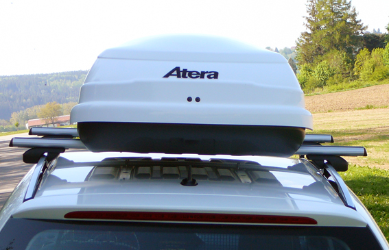 Обратите внимание! Автобокс на крышу Atera устанавливается не на саму крышу автомобиля, а на багажник. Сначала необходимо закрепить на крыше поперечины багажника, а потом уже на них ставится бокс.