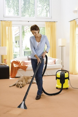 Принцип работы пылесоса не сложен: под давлением моющий раствор разбрызгивается по поверхности, а затем всасывается вместе с загрязнением. А если Вы чистите ковры, то параллельно распрямляется ворс. Приобретая Karcher SE 4001, Вы превращаете уборку в удовольствие!