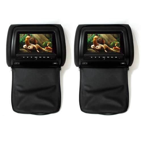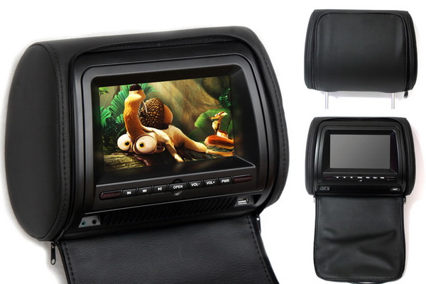 Комплект подголовников с LCD монитором 7" ERGO ER700H состоит из двух подголовников черного цвета, один из которых оснащен встроенным DVD-проигрывателем. Изюминкой данной модели является то, что подголовники имеют специальные чехлы с застежкой-молнией. Таким образом, когда чехол застегнут, подголовник выглядит как обычный и не привлекает постороннего внимания.