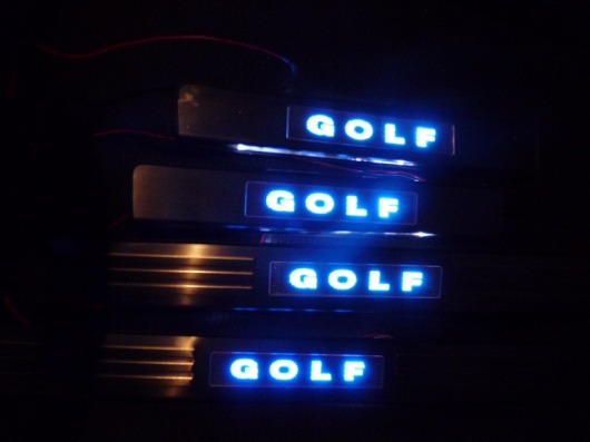 Накладки на пороги с подсветкой Volkswagen Golf VI от 2008 г.в. — это привлекательное дополнение интерьера салона вашего автомобиля. Усовершенствовать дизайн вашей машины вы сможете довольно просто, поскольку накладки полностью соответствуют порогам данного автомобиля. Подключение светодиодной подсветки происходит к бортовой сети автомобиля. Использование таких элементов тюнинга гарантирует вашему автомобилю не только индивидуальный внешний вид, но и повышенный комфорт во время посадки в автомобиль в темное время суток. Теперь каждое открытие двери вашей машины будет сопровождаться приятным синим неоновым свечением. Придайте вашему автомобилю индивидуальный вид!