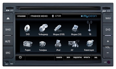 А во-вторых, она предоставляет вам множество полезных и востребованных функций, которых нет в заводской магнитоле. Головное устройство отлично справляется с воспроизведением различных популярных форматов мультимедийных файлов, имеет возможность подключения камеры заднего вида или датчика парковки. Магнитола MyDean снабжена GPS навигацией с выбором навигационной программы. Кроме того, в мультимедийном комплексе есть встроенный TV-тюнер, Bluetooth и GPS модуль с 20-ю каналами.