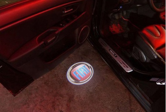 Подсветка с логотипом Fiat - новый нестандартный вариант тюнинга! В дверь авто устанавливается миниатюрный проектор, который выводит на асфальт четкое цветное изображение логотипа Fiat. Картинка появляется, когда вы открываете дверь, и исчезает, когда дверь закрывается. Выглядит это очень стильно и необычно.