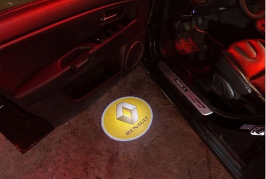 Подсветка с логотипом Renault - новый нестандартный вариант тюнинга! В дверь авто устанавливается миниатюрный проектор, который выводит на асфальт четкое цветное изображение логотипа Renault. Картинка появляется, когда вы открываете дверь, и исчезает, когда дверь закрывается. Выглядит это очень стильно и необычно.