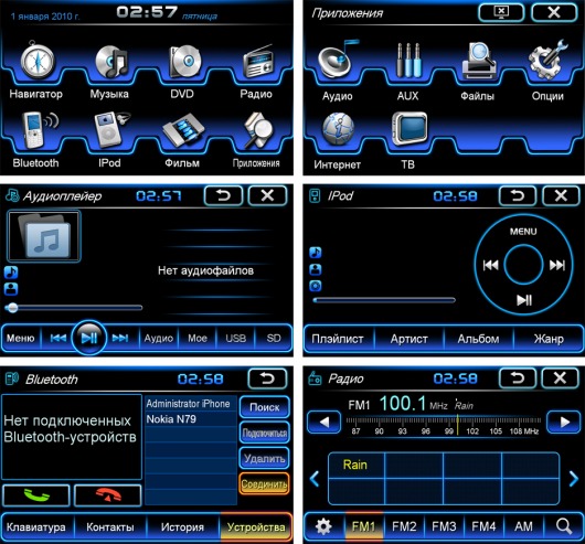 Кроме прочего, с помощью этого головного устройства вы сможете выходить в интернет и пользоваться функцией отображения пробок на дороге. Благодаря этой функции навигатор в вашей магнитоле будет прокладывать дорогу с учетом пробок, т.е. выбирать для вас самый быстрый и оптимальный путь. Чтобы появились доступ в Интернет и функция отображения кнопок, нужен модем Intro GPS 3G. Модем не входит в стандартную комплектацию и приобретается отдельно.