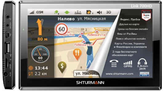 Навигатор Shturmann Link 700HD обладает большим дисплеем в семь дюймов. Благодаря такому большому экрану прибором удобно пользоваться даже во время движения. Управлять им можно либо с помощью специального стилуса, либо пальцем. Разрешение монитора оптимальное для просмотра и управления.