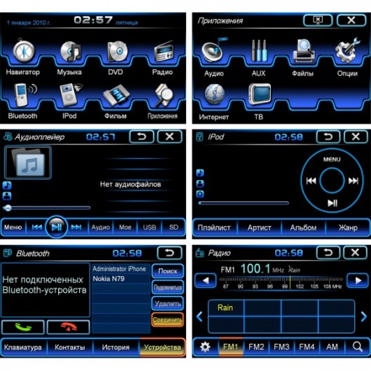 Кроме прочего, с помощью этого головного устройства вы сможете выходить в интернет и пользоваться функцией отображения пробок на дороге. Благодаря этой функции навигатор в вашей магнитоле будет прокладывать дорогу с учетом пробок, т.е. выбирать для вас самый быстрый и оптимальный путь. Чтобы появились доступ в Интернет и функция отображения кнопок, нужен модем Intro GPS 3G. Модем не входит в стандартную комплектацию и приобретается отдельно.