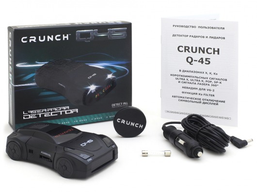 Мощный процессор мгновенно реагирует на все Ваши команды. Автомобильный радар-детектор Crunch Q45 STR работает в широких диапазонах температур. Установить модель в автомобиле проще простого. Прикрепите ее на лобовое стекло с помощью кронштейна или на приборную панель на липучке.