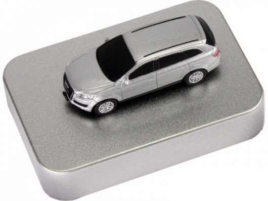 Но самое главное в этом аксессуаре - необычное исполнение. Флеш-накопитель представляет собой миниатюрную модель автомобиля AUDI Q7 серебристого цвета. А упакован он в красивую подарочную коробочку. Все это делает данную USB флешку полезным и интересным подарком!