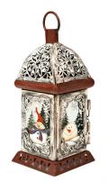 Симпатичный рождественский фонарик со снеговиками и белой резной крышей размерами 9,5 х 9,5 х 21 см, который можно использовать как подсвечник, подарит вам незабываемое рождественское настроение долгими зимними вечерами.