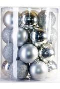 В наборе: 24 шара диаметром 6 см (8 глянцевых, 8 матовых, 8 с блестками)