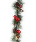 Новогодняя сосновая гирлянда создает прекрасное рождественское настроение. Вы можете использовать эту гирлянду для праздничного оформления дома или офиса. Елочная гирлянда длиной 1,83 м украшена яркими красными яблоками, гранатами и шишками.