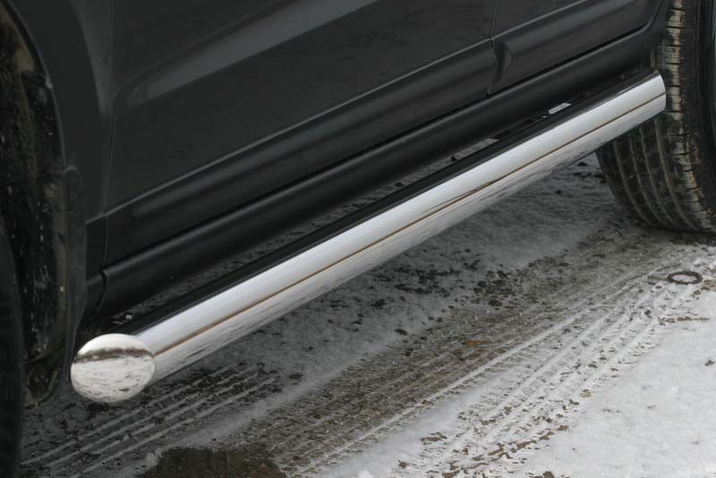 Боковые пороги на Hyundai Santa Fe из нержавеющей стали диаметром 60 мм не боятся коррозии, сколов и царапин и выдерживают большие нагрузки. Боковые подножки-пороги трубой сделаны специально для автомобилей Hyundai Santa Fe 2006-2010 г.в., легко устанавливаются и стильно смотрятся. В комплекте вы получите 2 подножки.