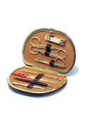 Маникюрный набор включает 8 инструментов: ножницы для заусенец, ножницы для ногтей, обычные кусачки, триммер, пинцет, пилка, палочка