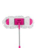 Двухсторонняя швабра со сменной насадкой из микрофибры имеет удлиняющуюся телескопическую ручку для простой и быстрой уборки, которая изготовлена из легкого алюминиевого сплава.