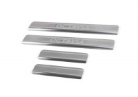 В данном разделе представлены декоративные накладки на пороги автомобилей Skoda. Здесь вы найдете накладки на пороги двери и багажника, которые изготовлены из надежного материала — нержавеющей стали. Накладки на пороги автомобилей Шкода производятся с учетом особенностей каждого авто, поэтому их установка не требует особых усилий.