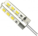 Светодиодная лампа с цоколем G4 и 13 яркими светодиодами SMD 5050 (12-15 Лм на 1 диод). Потребляемая мощность: 15 Вт. Рабочее напряжение: 10-30V. Холодный белый цвет.