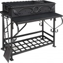 Дополнительно в комплекте: топка-печь для казана, решетка для гриля, держатели для вертела, крышка для жаровни, крышка барбекю, дровница, столик для посуды